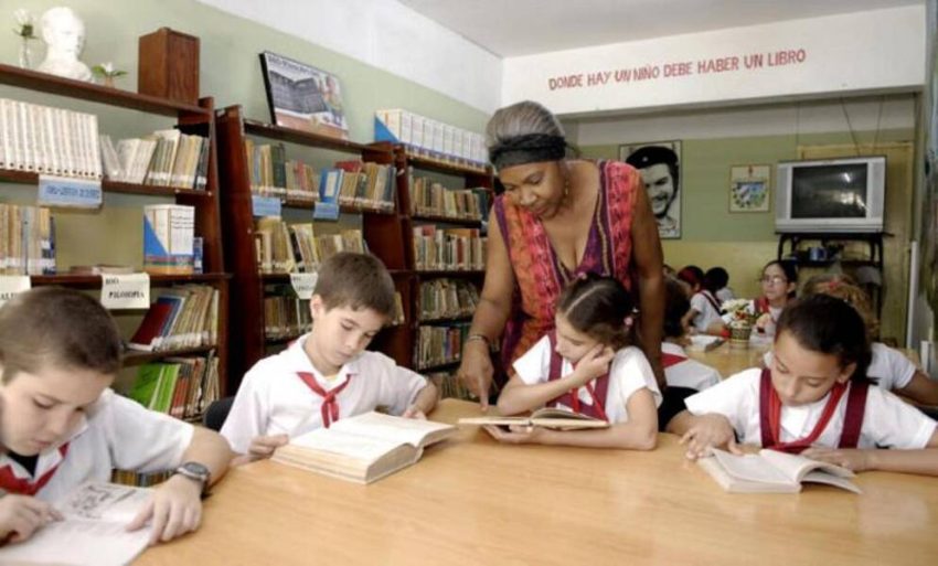 Profesor-bibliotecario en la escuela